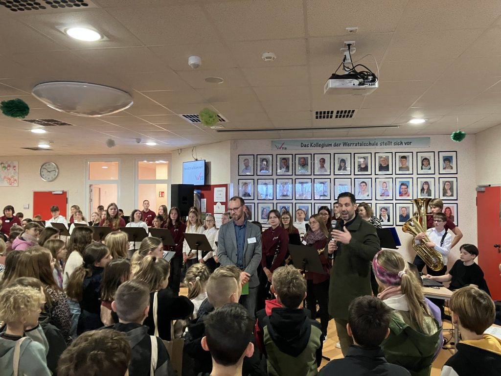 Am Samstag, den 15.11.2025 öffnete die Werratalschule erneut ihre Türen für neugierige Viertklässlerinnen und Viertklässler, ihre Familien sowie Interessierte an der gymnasialen Oberstufe. Schon beim feierlichen Beginn in der Aula herrschte eine fröhliche, erwartungsvolle Stimmung. Schulleiter Christoph Peters begrüßte die Gäste herzlich und stimmte sie gemeinsam mit dem Schulorchester auf einen abwechslungsreichen Tag ein.